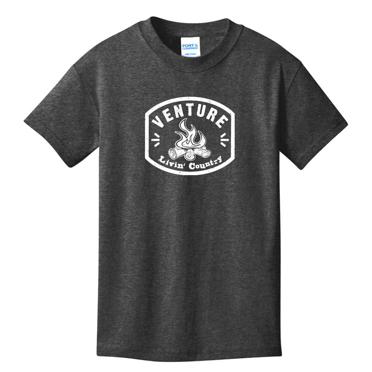 Perfect for your little country kiddos. Super comfortable tee with the Livin' Country Venture Campfire logo!
